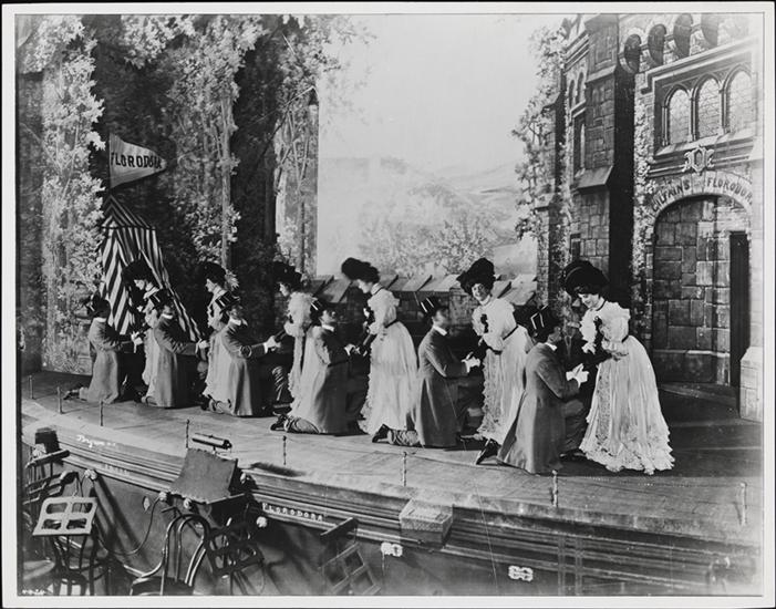 A scene from the musical "Florodora," book by Owen Hall and and music by Leslie Stuart presented at the Broadway Theatre, Broadway and 41st Street, New York City in 1900.