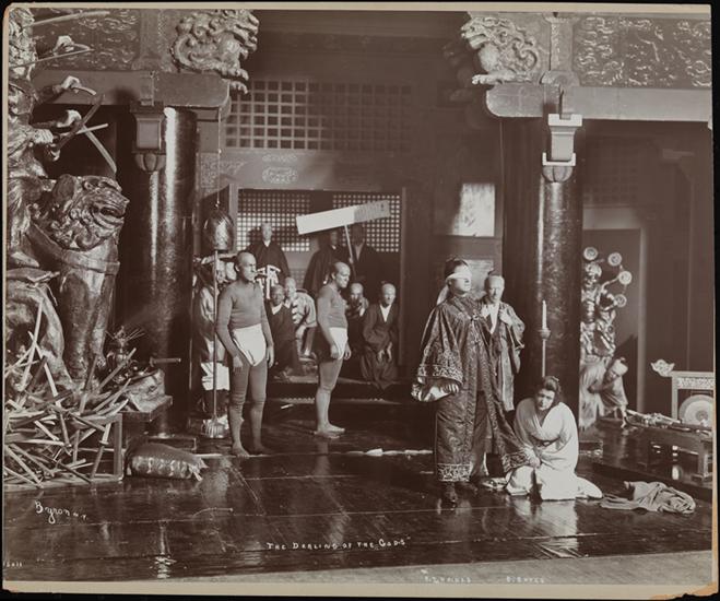 Scene from "Darling of the Gods" featuring Blanche Bates and Robert T. Haines.