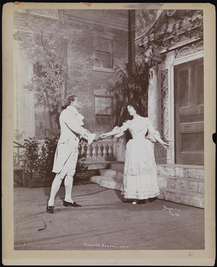 A scene from Edward E. Rose's play "Richard Carvel" featuring John Drew and Ida Conquest.