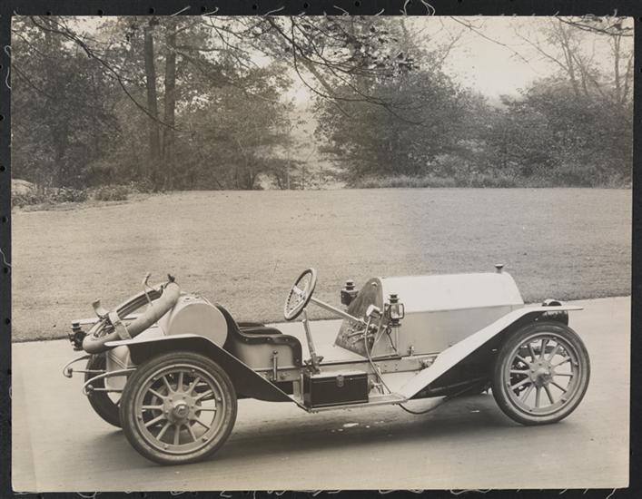 "1912 Palmer & Singer: Raceabout, 6 Cyl. 50 H.P." pencilled on verso. | Stamped with other photographer's stamp, but name portion is overwritten in ink to read "Valentine/Photographer/439 Broad St., N