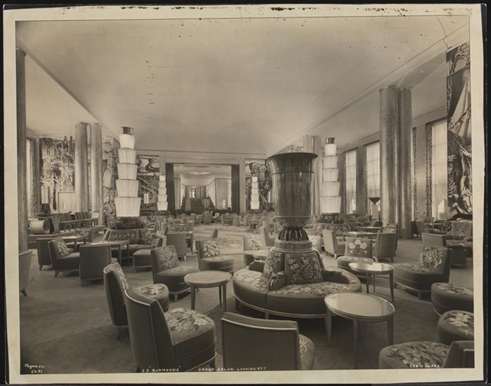 French Line, S.S. "Normandie", Pier #88 N.R., Interior, Grand Salon Starboard Side Aft.