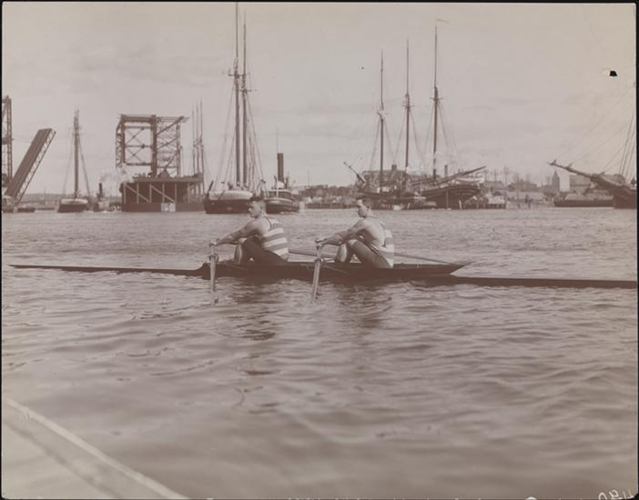 Numbered on neg. | Photographer's stamp on verso, including credit line and permission to publish, followed by "from Healy" in pencil. | "Jack Nagle and Fred Hawkins" pencilled on verso of similar pri