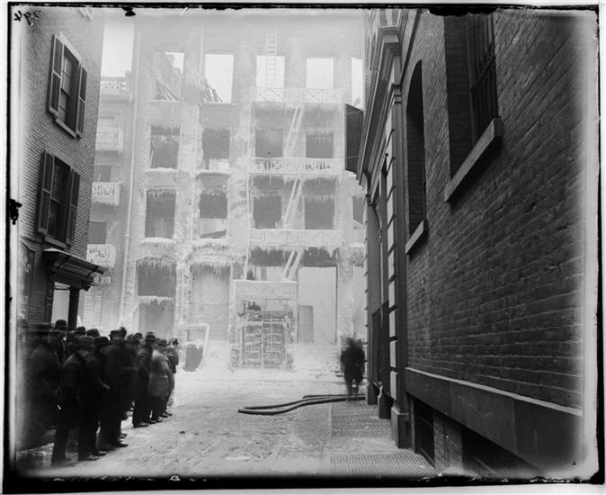 Ice-coated house (burned) in Crosby Street opposite Jersey Street, January 1896.
