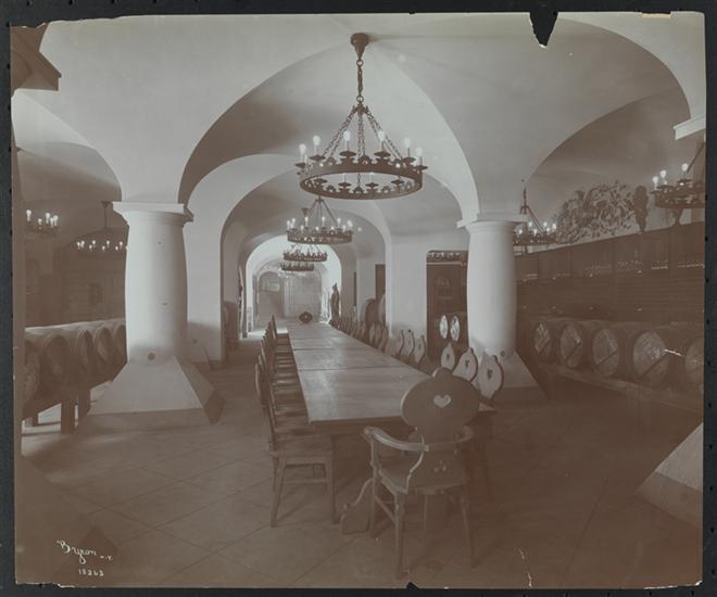 Interior of the rathskellar/wine cellar at the Hotel Astor, Broadway and 45th Street.
