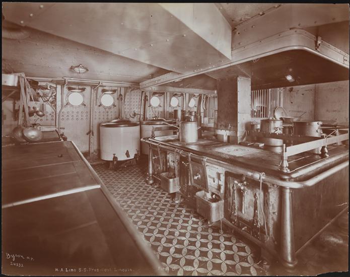 "H.A. Line, S.S. President Lincoln, 1st Cl. Kitchen" on neg.