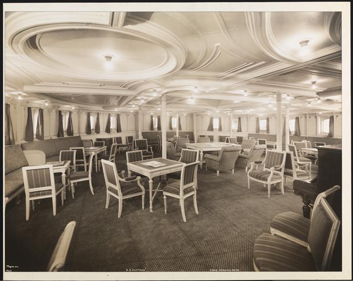 French Line, S.S. "France", Pier 57 North River, Interior, Third Class, Ladies' Room.