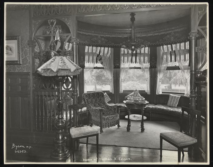 "Home of Thomas A. Edison" on neg. | Photographer's stamp on verso, including credit line and permission to publish followed by "from Healy" in pencil.