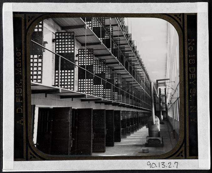 Blackwell's Island. Interior of Penetentiary, dark cells in foreground.