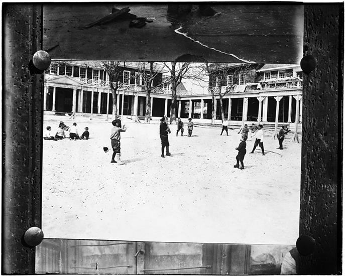 Organized Charity. [Children Resting in Outside Infirmary].