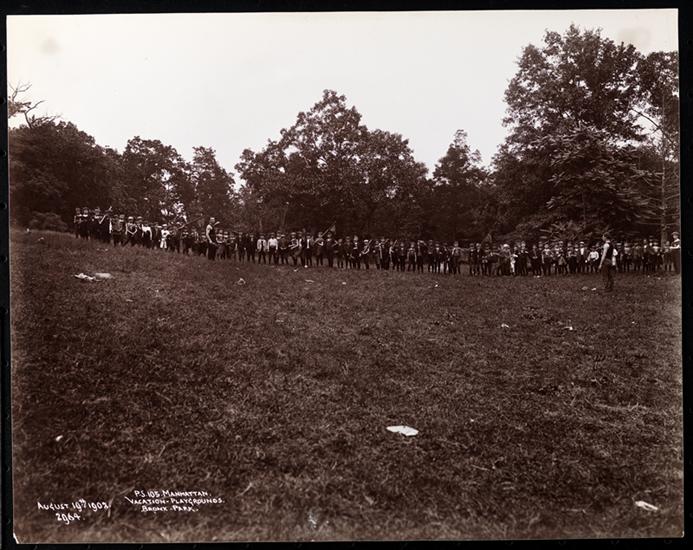 Public School 105 from Manhattan at the vacation playgrounds in Bronx Park, August 19th 1902.