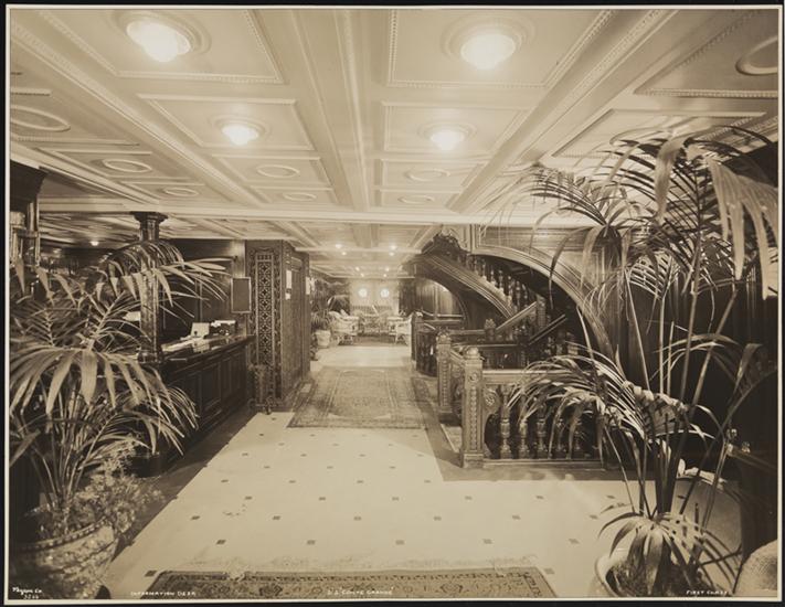 Lloyd Sabaudo Line, S.S. "Conte Grande" Pier 95 North River, First Class, Interior, Information Desk.