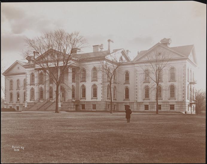 A large neo-classical building at Sailor's Snug Harbor, a facility and home for retired sailors on Staten Island, New York.