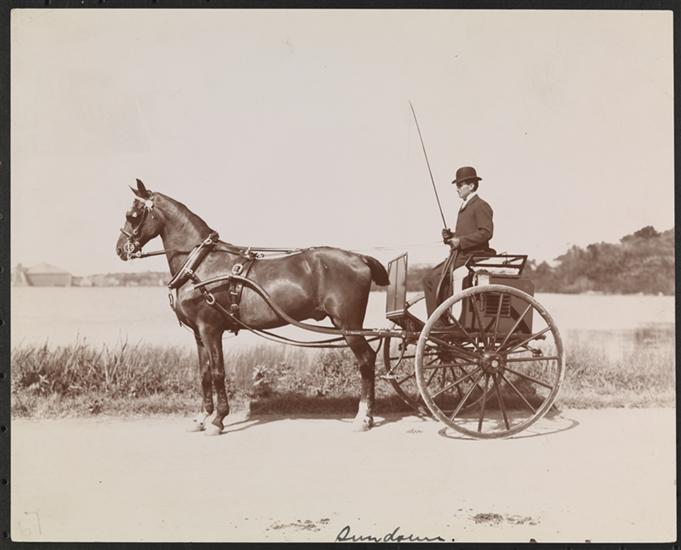 Inscription / technical details "Sundown" in ink on print. ; "James Stillman's Father's turn out [?] at Newport, R.I., 1898" pencilled on verso.