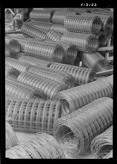 Leroy and Hudson Street. American Dye Stuff Co., under construction. Laying steel wire re-enforcement for concrete flooring.