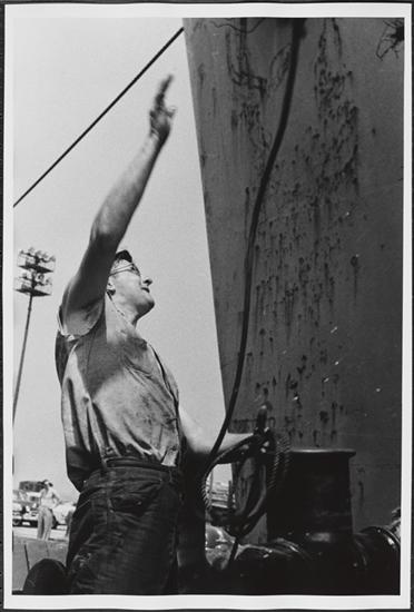 [Crew member on a ferry.]