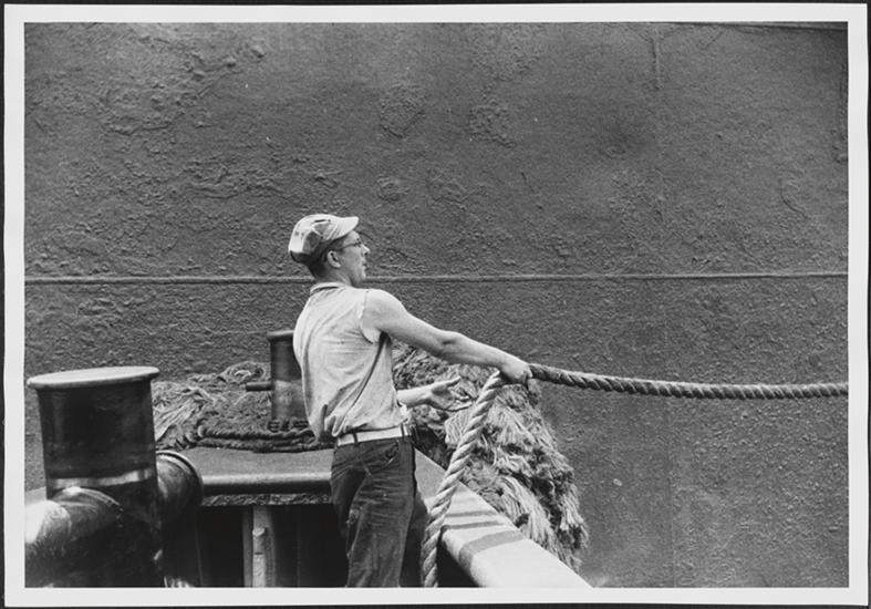 [Crew member on a ferry.]