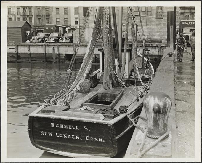 In ink, on verso: Russell S / Reg #230433 / 4-28-42 / Indicator No. / 363 / Observer / G.R. Johnson / Vessel / Russel (oil) / Home Port New London Conn. / Radio / Yes / Frequencies / CG 2670 WOX 2126