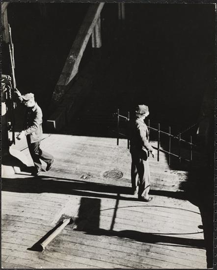 [Crew members on the ferry.]