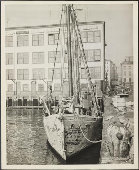 ["Lind's Basin" and other fishing boats at dock.]