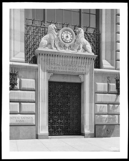 2100 Broadway. Central Savings Bank, detail around Broadway side and entrance.