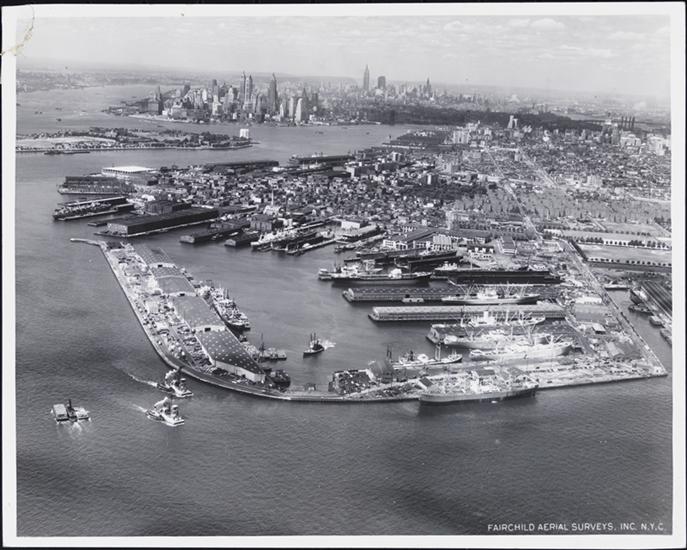 [Aerial view of Brooklyn Piers and Manhattan.]