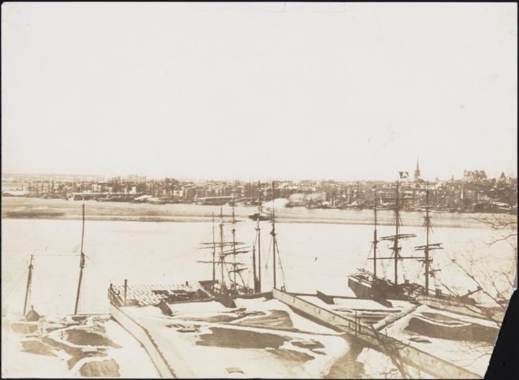 [S.S. "Normandie", Nearing Her Pier, New York.]