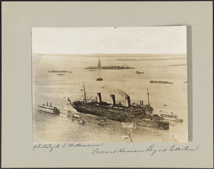 [The "Leviathan" passing the Statue of Liberty with 27th Division returning.]
