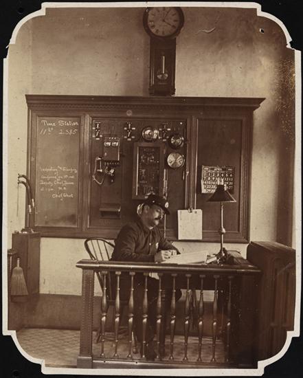 [Horse-drawn fire engine outside the fire station of Engine 30]