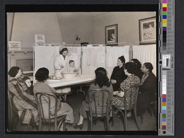 Maternity Center Association, Nude Baby Sitting Up on Bed.