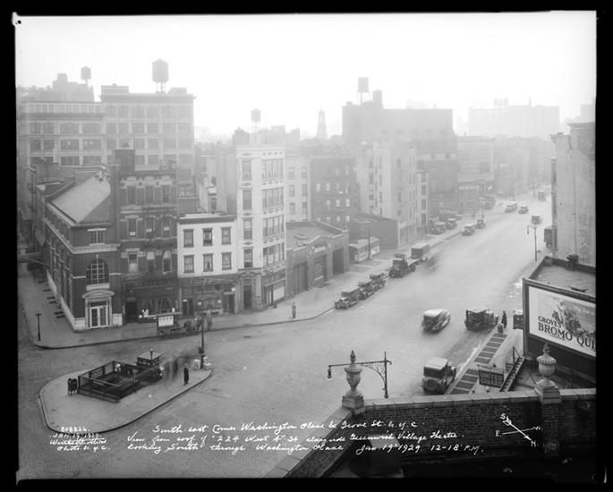 Grove Street and Washington Place, S.E. corner. Sheridan Square, record photo.
