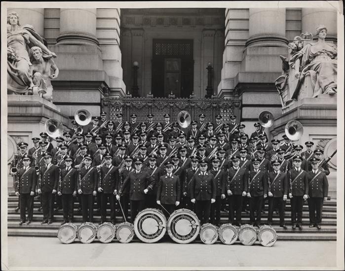 [A. Group portrait of a band ; B. Police squad Mulberry Street.]