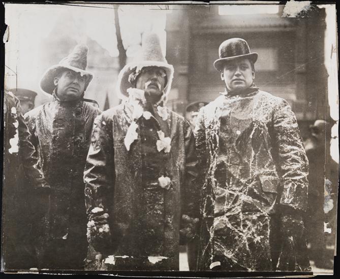 [Group portrait of firemen, including Ed Worth, Chief of 3rd Battalion.]