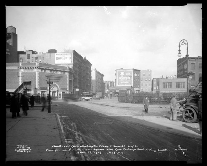 Grove Street and Washington Place, S.E. corner. Sheridan Square, record photo.