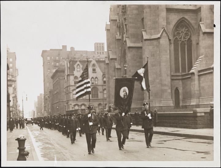 [A. Horse-drawn fire equipment in a parade ; B. Horse-drawn fire equipment in a parade.]
