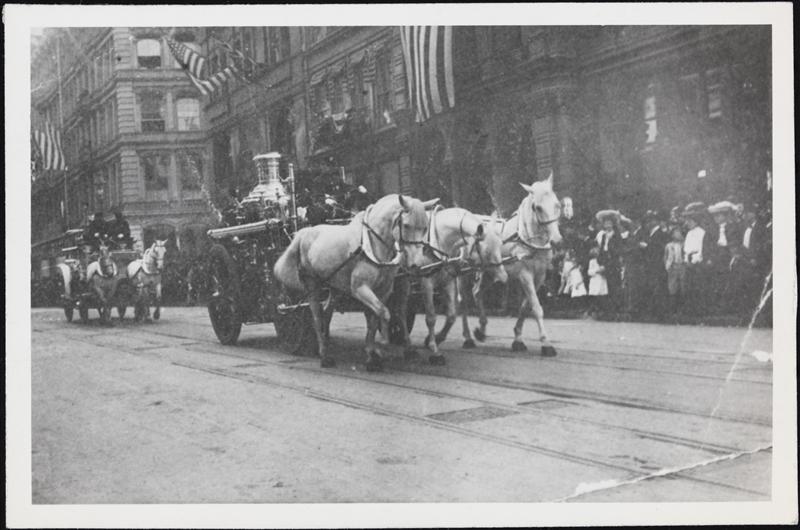 [Horse-drawn fire engine.]