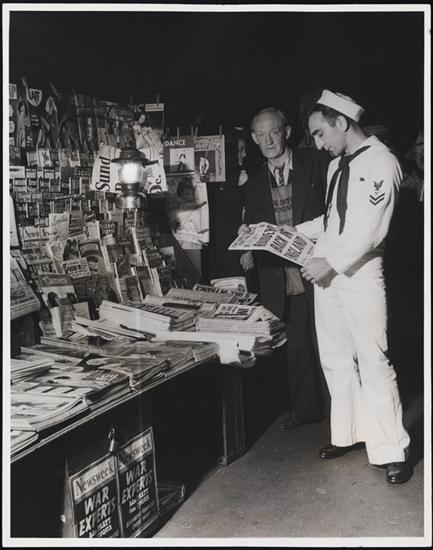 [Soldiers at newspaper stand.]