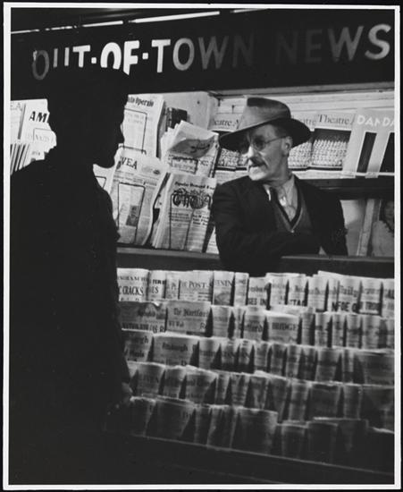 All Around the Town - Miscellaneous New York City Scenes [People browsing out of town newspapers at a 42nd Street newspaper stand.]
