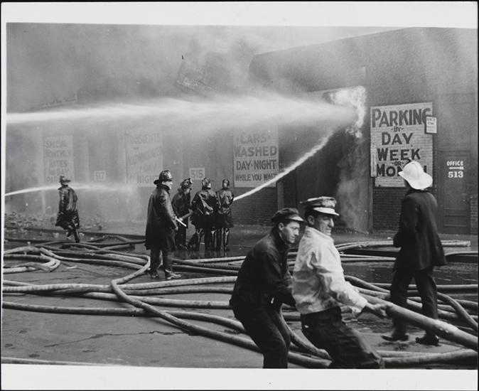 [Jersey City's biggest dock fire, taken from Staten Island Ferry.]