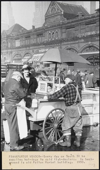 Fishdealers' Horseplay. [Fish sellers outside of the Fulton Fish Market.]