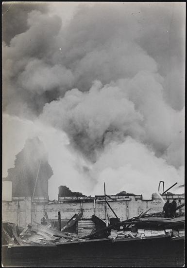 [Building on fire.]
