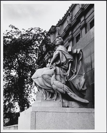 ["Manhattan" granite statue on the Eastern Parkway façade of the Brooklyn Museum.]