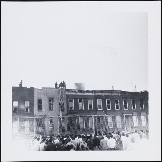 [A. Firemen with a rescue net ; B. Horse-drawn fire engine.]