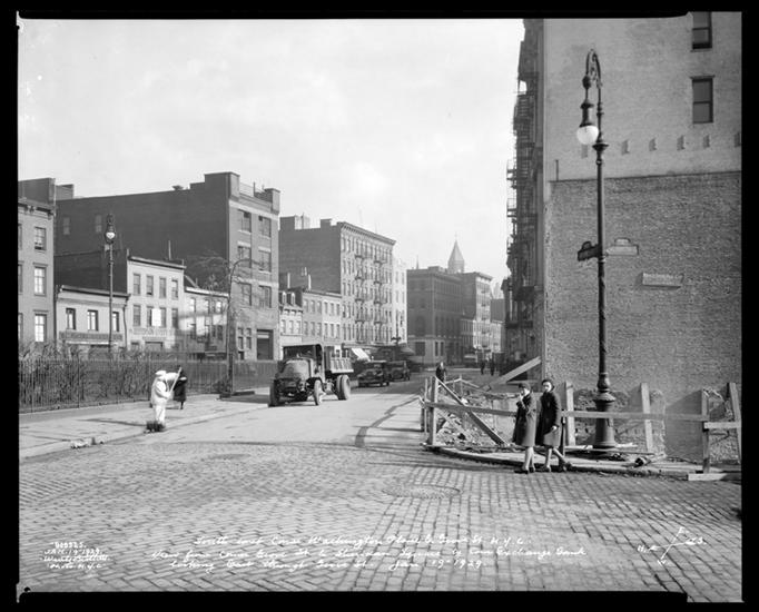 Grove Street and Washington Place, S.E. corner. Sheridan Square, record photo.