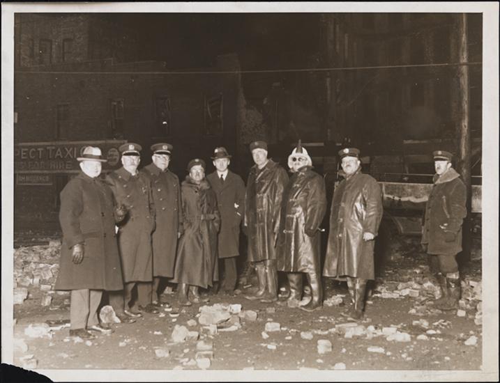 [Group portrait of firemen, including Ed Worth, Chief of 3rd Battalion.]