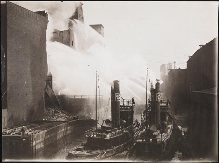 [Hose cart of Engine 58 smashed by falling wall at a five alarm fire in Washburn Wire Works.]