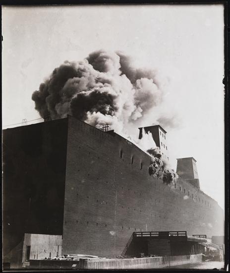 [Warehouse on fire.]