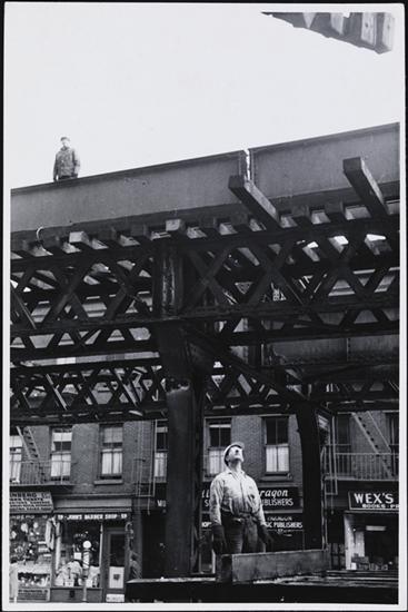 [Cutting through trusses of the Third Avenue El between 6th and 7th Streets.]