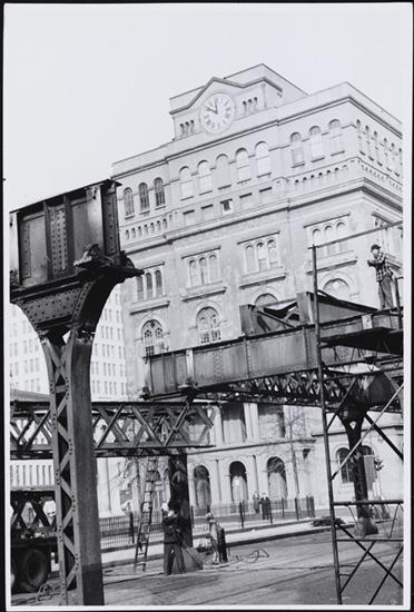 [Cutting through trusses of the Third Avenue El, north of 6th Street.]
