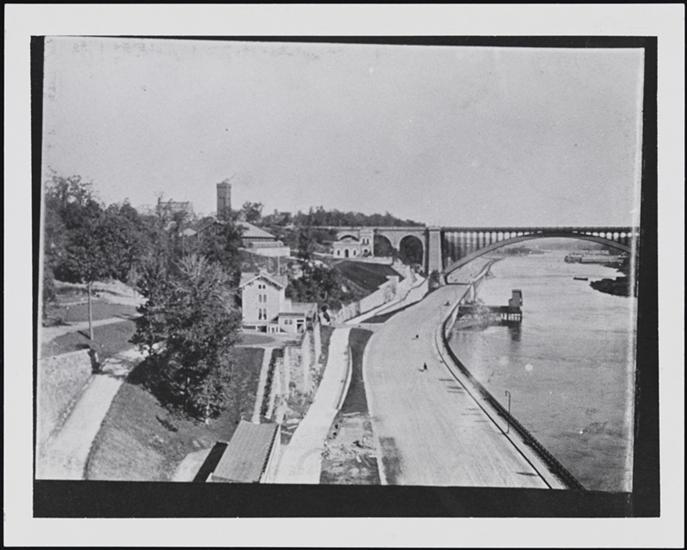 In pencil, on verso: View of Washington Bridge; in ink, on verso: Original photograph filed / with High Bridge.