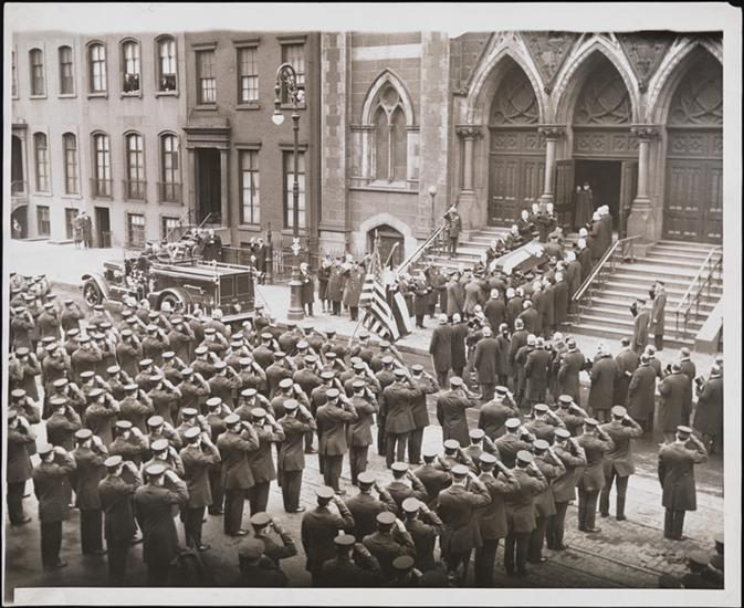 [Firemen exiting St. Patrick's Catherdral from a funeral.]